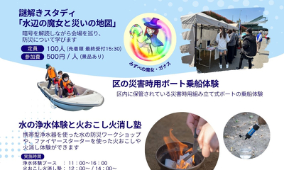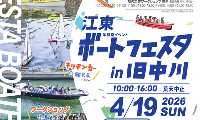 江東区立旧中川水辺公園外3施設(愛称:江東旧中川水彩パーク)は旧中川川の駅にぎわい施設から旧中川沿いに北上して亀戸中央公園前まで広がる江東区立旧中川水辺公園、ビオトープと桜並木を楽しめる江東区立亀戸九丁目緑道公園、水陸両用バスが利用するスロープ、災害時に利用可能な亀戸中央公園乗船場の2公園2施設からなる総面積約6ヘクタールの公園です。
