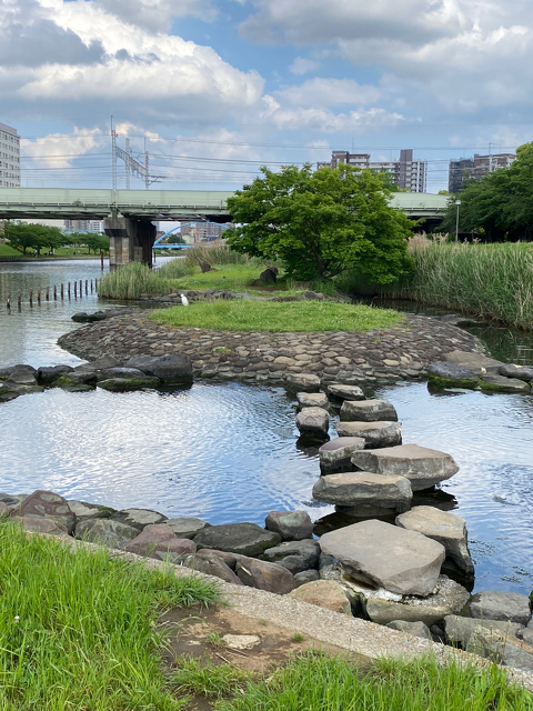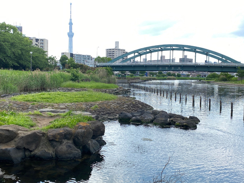 江東区立旧中川水辺公園外3施設(愛称:江東旧中川水彩パーク)は旧中川川の駅にぎわい施設から旧中川沿いに北上して亀戸中央公園前まで広がる江東区立旧中川水辺公園、ビオトープと桜並木を楽しめる江東区立亀戸九丁目緑道公園、水陸両用バスが利用するスロープ、災害時に利用可能な亀戸中央公園乗船場の2公園2施設からなる総面積約6ヘクタールの公園です。
