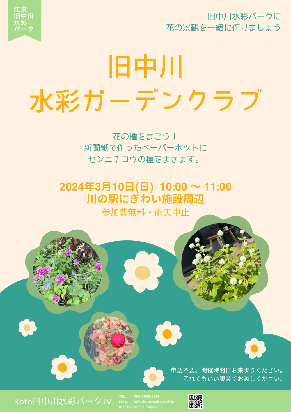 花の景観を育てるボランティア活動、旧中川水彩ガーデンクラブの体験会。