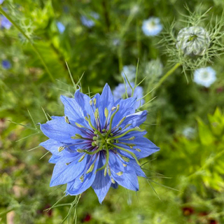 春に咲く花のニゲラ、ビスカリアなどの花、