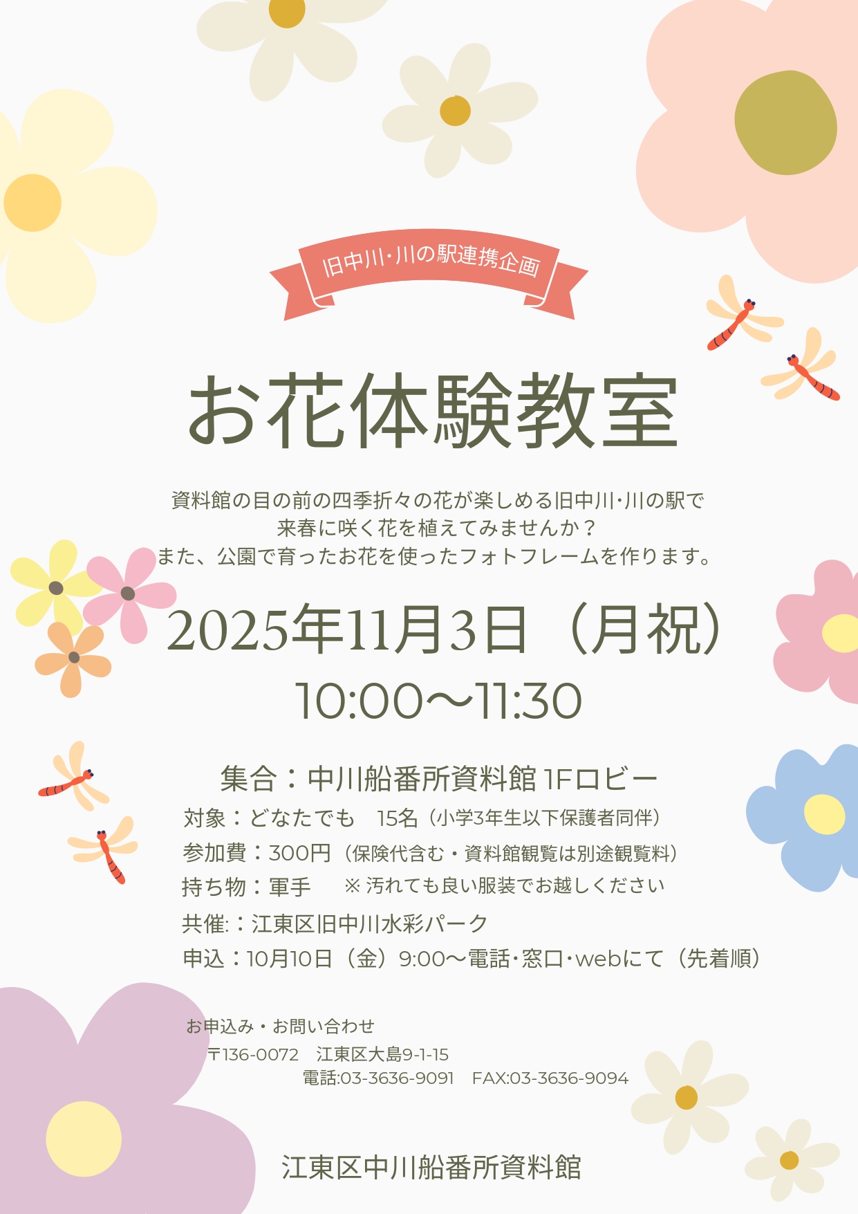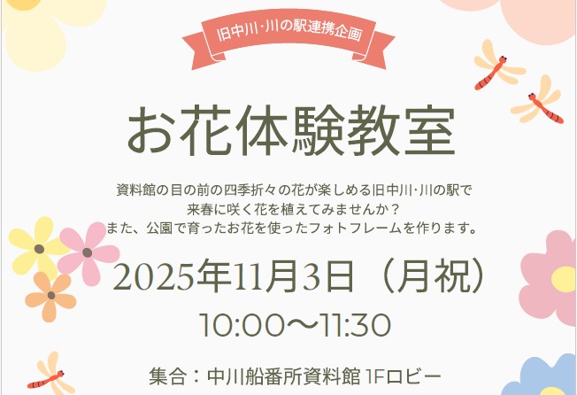 川の駅のすぐお隣にある『中川船番所資料館』と協働で、お花にふれるイベントを実施します!