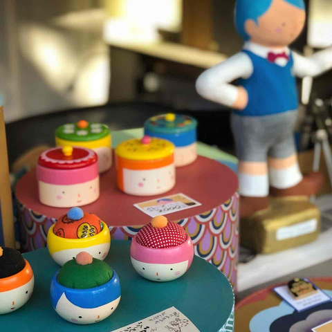 切り絵や和紙をアレンジした木製ブローチやヘアゴムなどのアクセサリーや、型染めのクッション、バックなどを販売致します。
