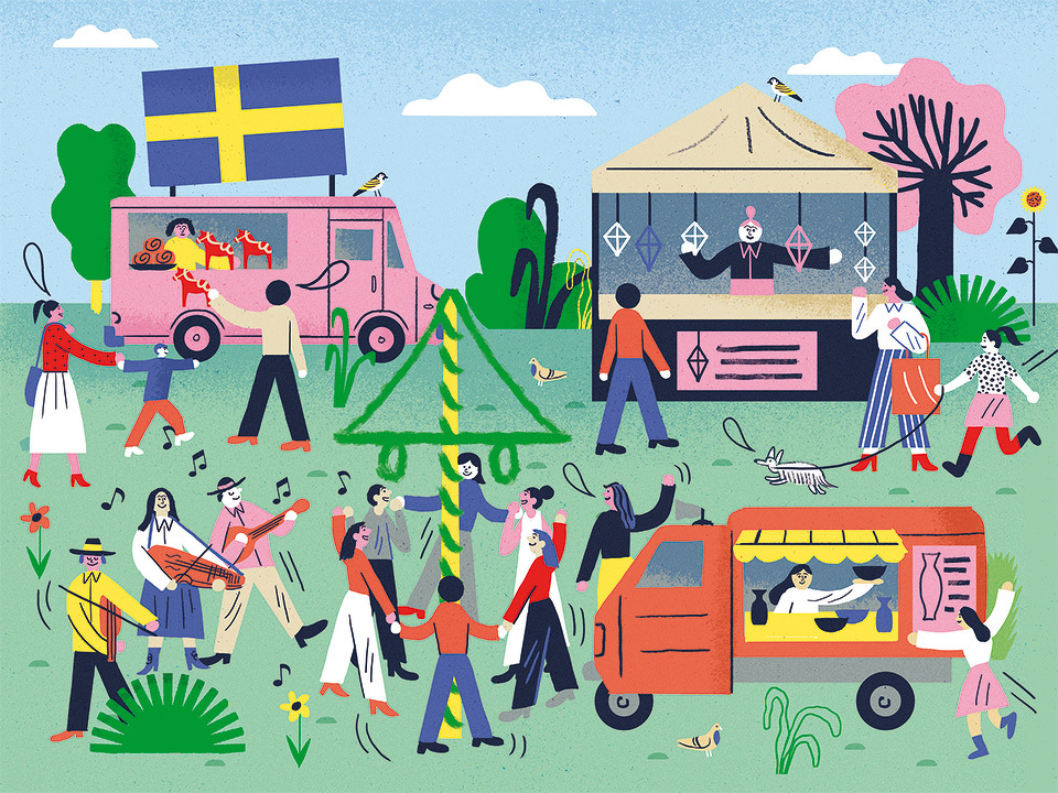 花かんむりとダンスはスウェーデンの夏至祭の定番!