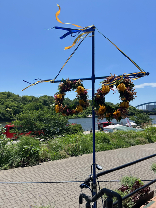 夏至祭のポールは花とグリーンで飾ります