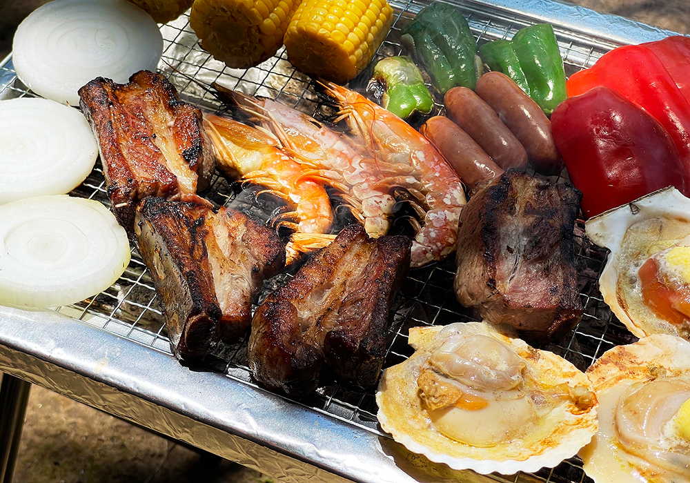 必要な基本器材はすべてプランに付属しており、お肉や海鮮、野菜、サイドメニューなどの食材がご予約可能です。